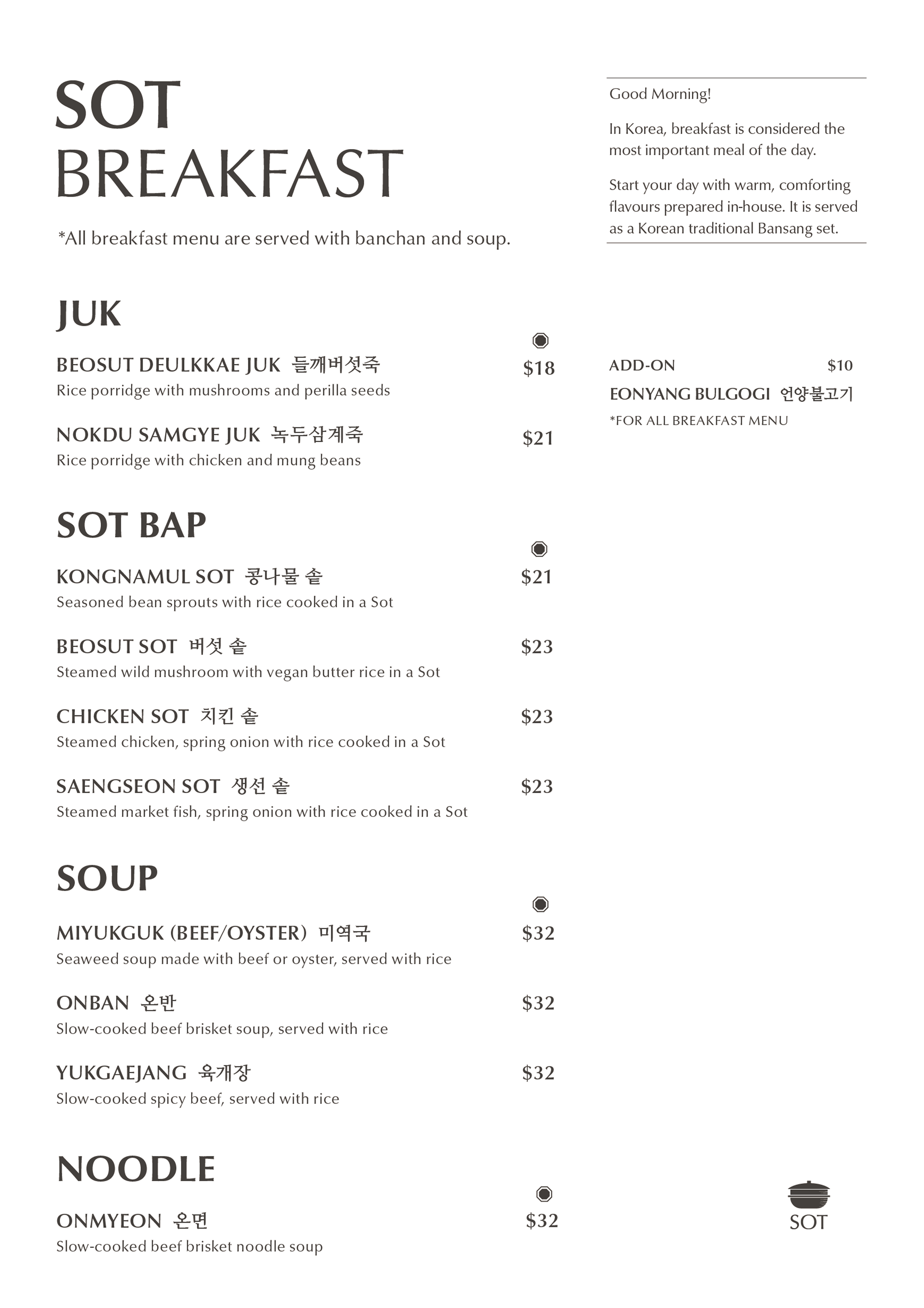 SOT Dining MENU