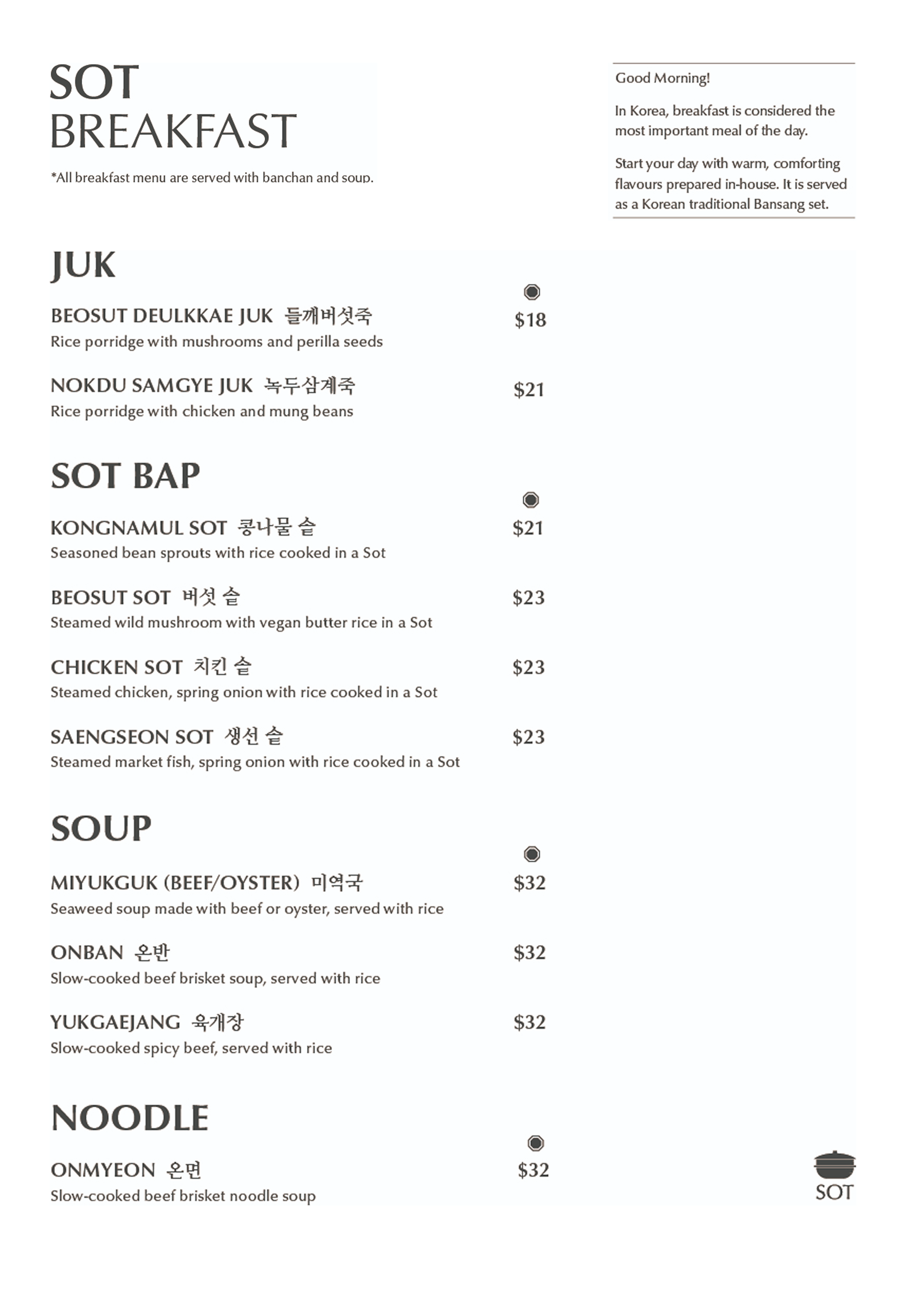 SOT Dining MENU